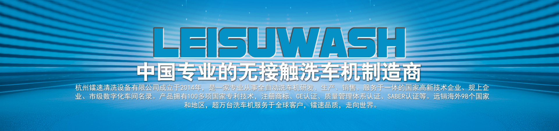杭州鐳速清洗設備有限公司成立于2014年,是一家專業從事自動洗車機研發、生產、銷售、服務于一體的國家高新技術企業,注冊資金2000萬元。匯聚了一批專業的技術創新團隊,與時俱進,不斷創新,研發生產出質量過硬、技術領先的全智能電腦洗車設備,是國內集洗護一體全自動汽車清洗系統的開拓者和領跑者。 鐳速公司一步一個腳印,一步一個臺階,通過不斷的努力和鉆研,厚積薄發,從一家名不經傳的小企業,走到今天,成為中國洗車機行業出口最多的企業。鐳速品質正逐步成為中國洗車機行業的高品質代名詞,真正進入國際一線洗車機行列,打造贏得全球信賴的中國品牌!